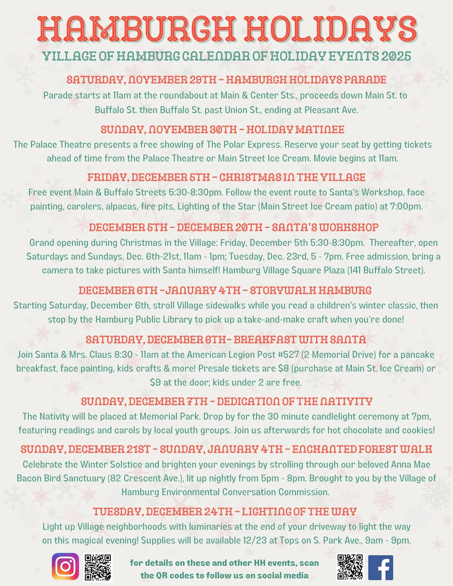 Hamburgh Holidays Parade Saturday, November 29, 2025 11:00 AM 12:00 PM Google Calendar ICS Mark your calendars for Hamburgh Holidays' exciting lineup of events. From the annual Holiday Parade to Lighting of the Way, and so much in between, there's something for everyone to enjoy.